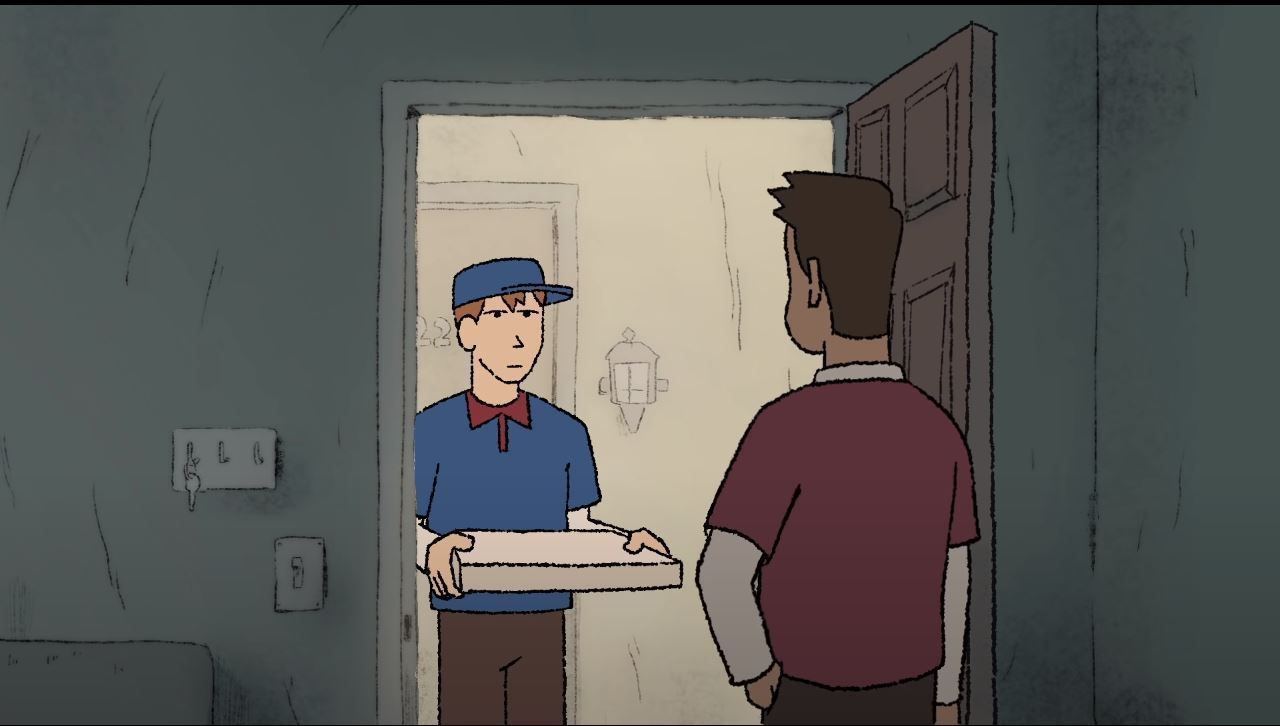 Метт, самотній чоловік близько 20 років, виходить на балкон і коротко розмовляє з кимось через дорогу.